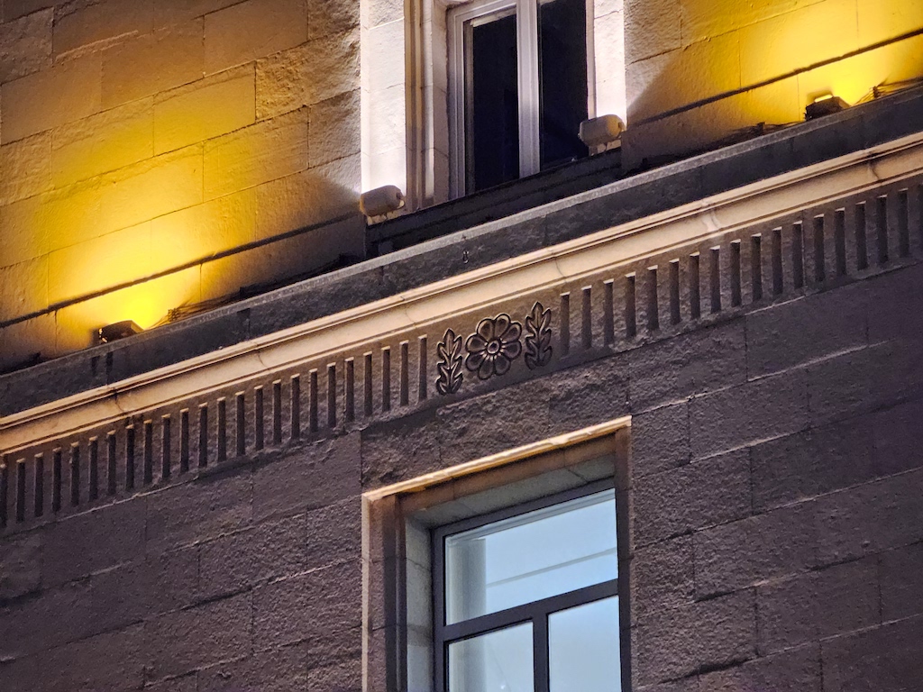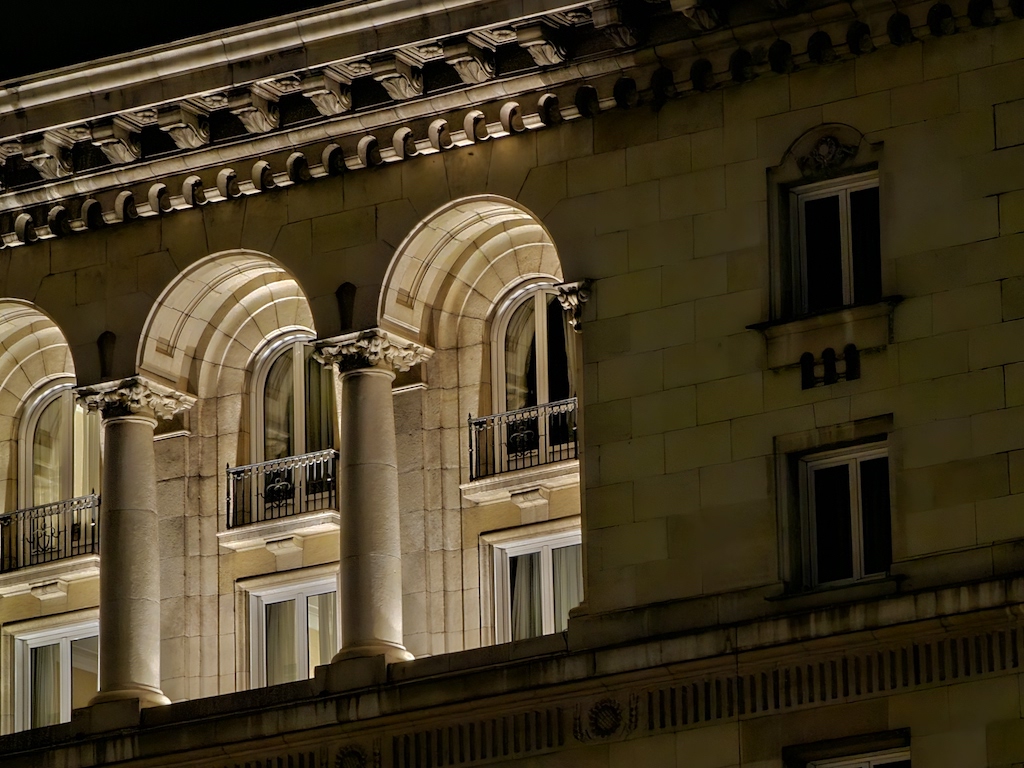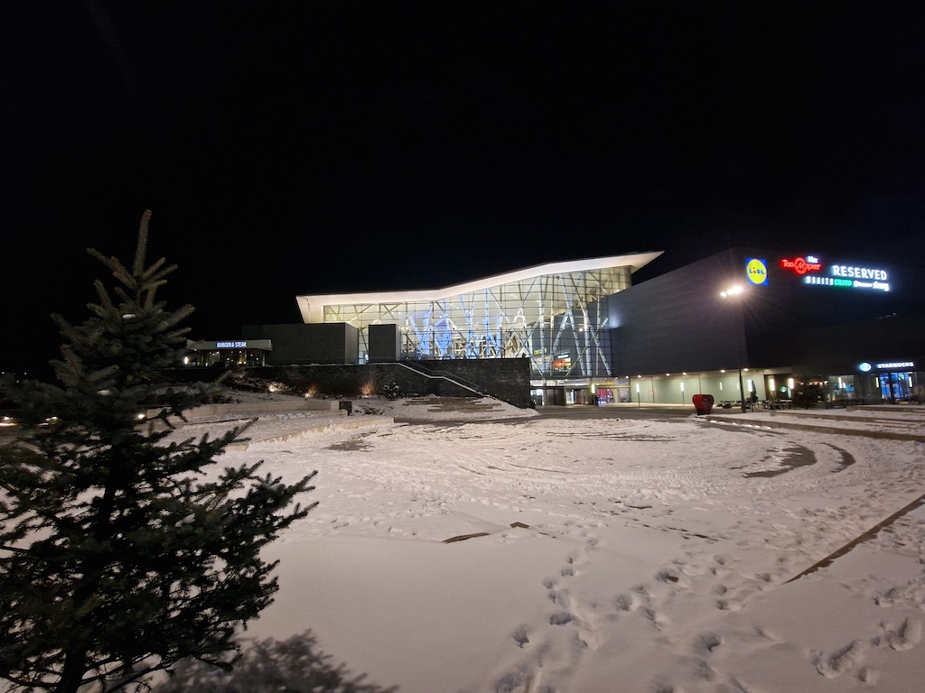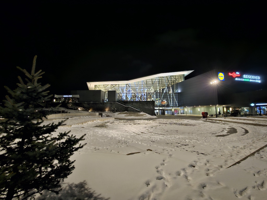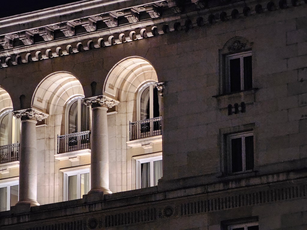 接下來使用專屬的夜間模式可以為影像帶來多大的改進很值得一提,而且非常了不起。底下這組照片明顯更乾淨,細節也更好,沒有上面主鏡頭開啟專屬夜間模式後那種加工演算讓銳利度過高的情況。動態範圍也獲得正向的提升。因此我們建議使用超廣角鏡頭在夜間環境拍攝時,直接就開啟專用的夜間模式吧,不要使用自動夜間模式了。