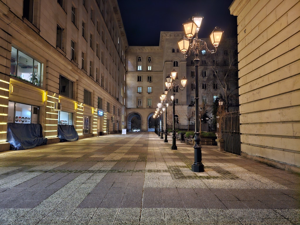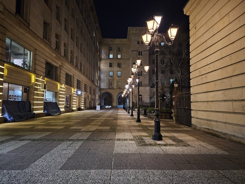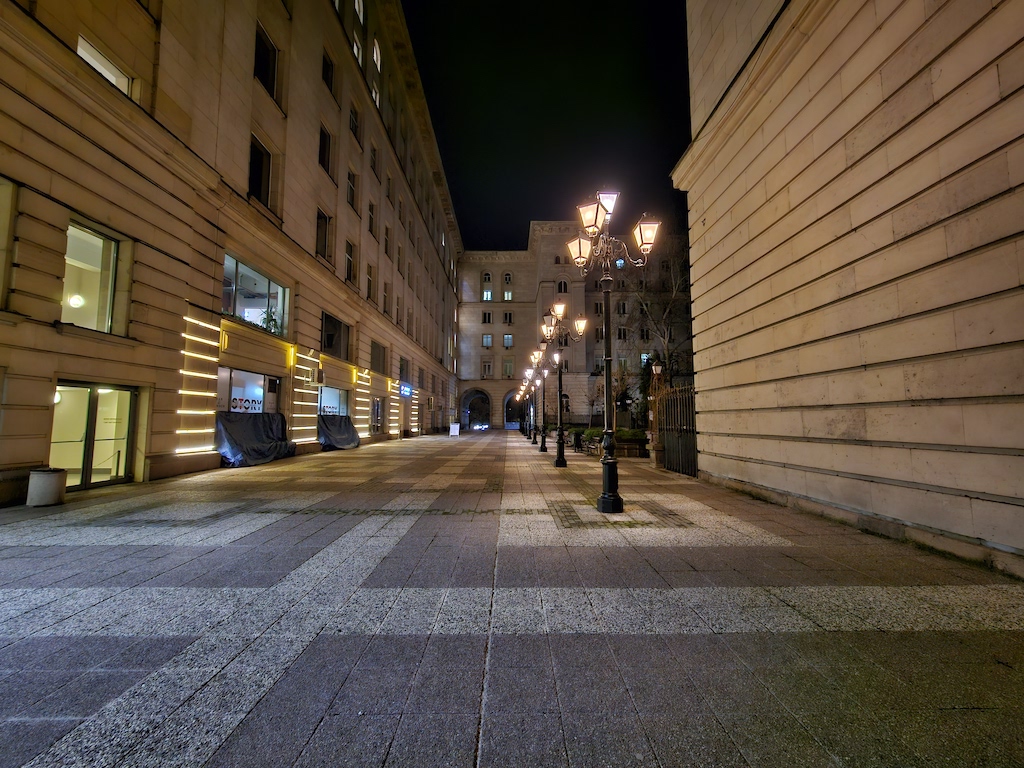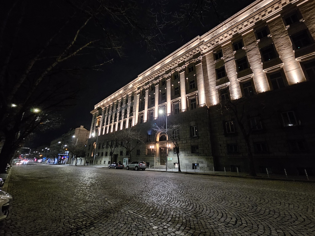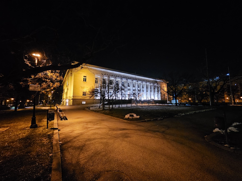 在低光源環境時,S23 Ultra有自動啟動夜間模式功能可以自動套用一些額外的演算處理。此功能不會在所有場景中介入,但當它介入時,觀景窗旁會有一個黃色的新月圖示提醒,此時你若不想套用它,可以在這個黃色新月圖示上點一下,月亮就會從黃色變成白色,表現自動夜晚功能關閉了。照相程式會記憶你最後一次使用的拍照設定。實測結果,S23 Ultra主鏡頭在夜間可以拍出令人滿意的照片。色彩被良好保存下來,而且在黃色路燈照射或光線複雜的場景,白平衡沒有出現什麼問題。補獲的細節豐富而且渲染佳,雜訊控制在最小值。