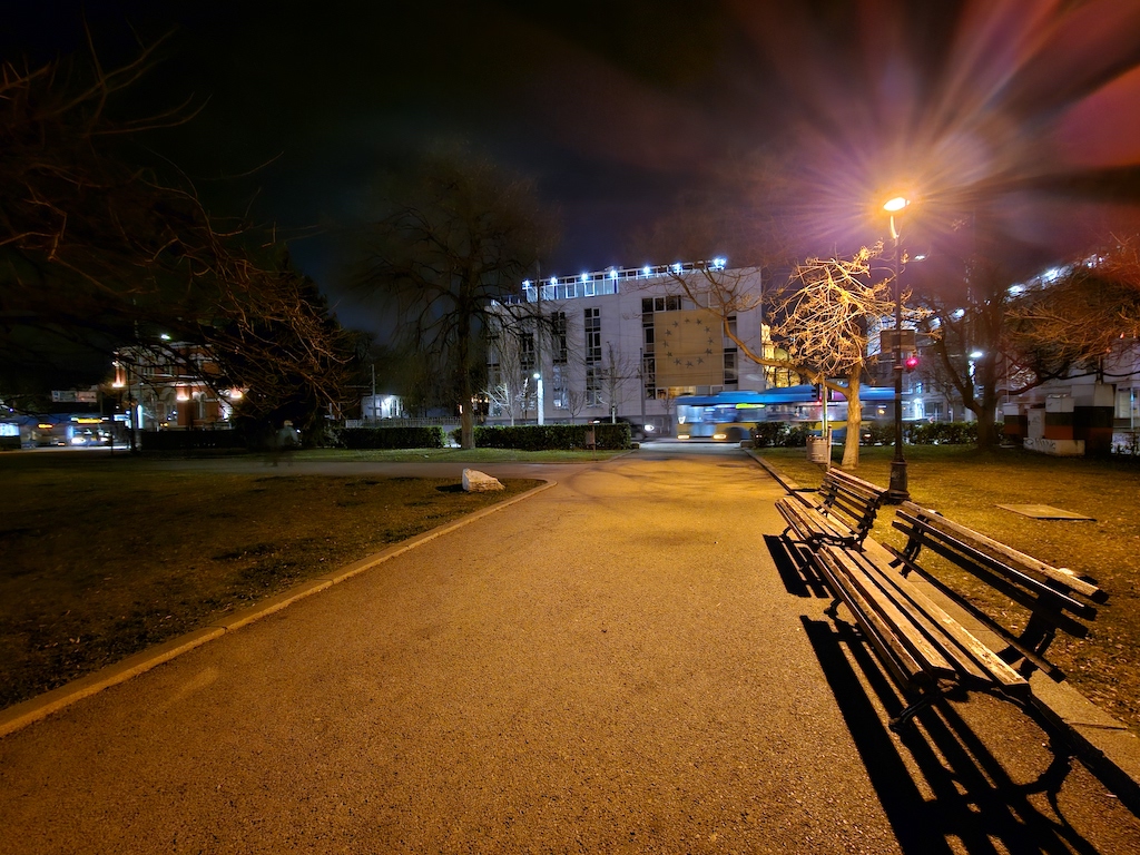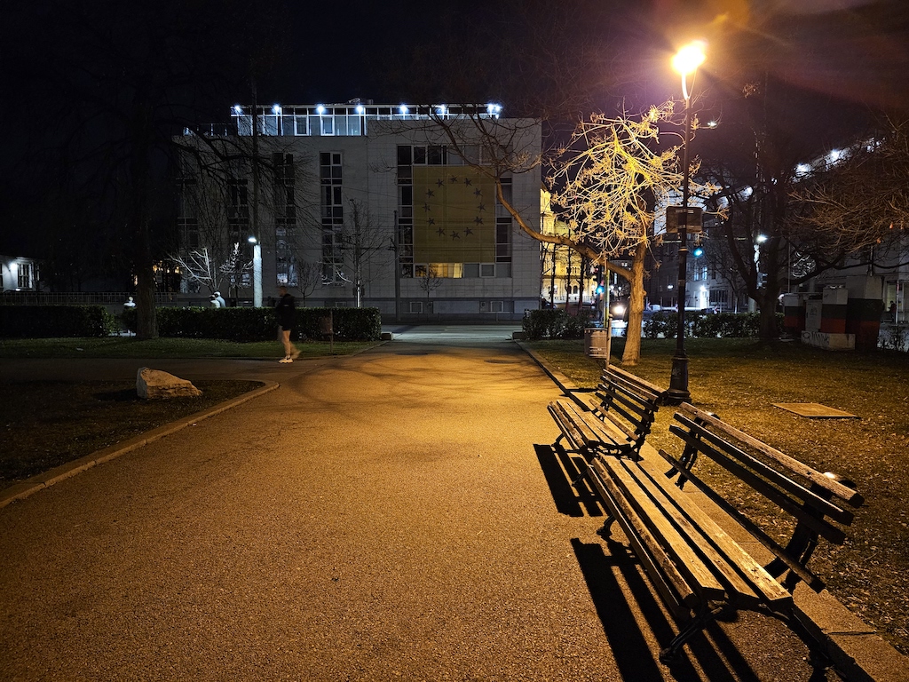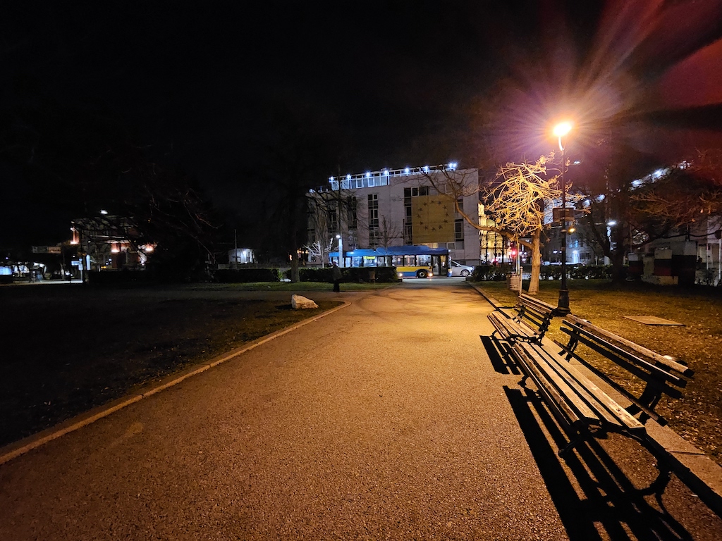 自動夜間模式通常可以讓相片獲得平衡的曝光表現,明亮區域細節保持完整,陰影區域發展良好。但是對於更暗或對比度更高的場景,我們建議使用專用的夜間模式而不是自動夜間模式,好捕獲到更暗區域的更多細節,而且在點狀式光源,如路燈,的表現也會更好。此外,或許是夜間模式都得這樣處理的原因,此模式的銳利度都會再拉高,讓影像細節更有加工過的味道。