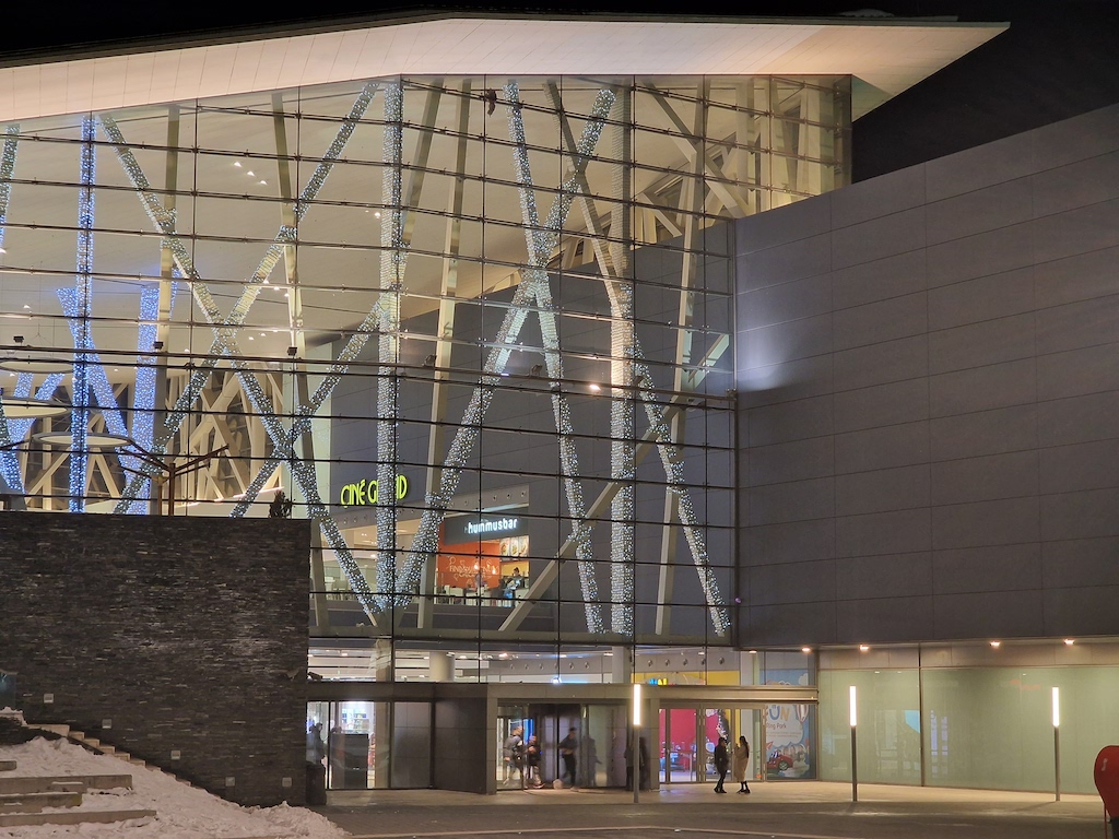 嚴格來說,S23 Ultra的超廣角鏡頭在低光源環境拍攝表現就沒有什麼特別之處,但還算可以。在自動夜間模式下,動態範圍表現佳,但如果在更具挑戰的光線條件下,建議使用專屬的夜間模式。底下這組照片是超廣角在自動夜間模式的表現,色彩保留良好,而且我們沒遇到白平衡表現不穩定的情況。將影像放大原尺寸觀看時,在光源充足區域有相尚好的細節,但在較暗區域及中間調較低區域就被雜訊覆蓋了。
