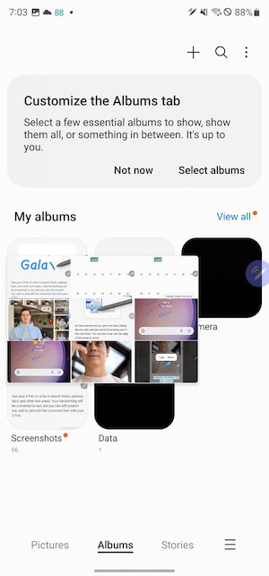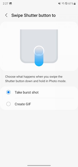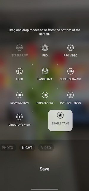 相機程式與其它三星機款上面看到的相同,左右滑動可在不同模式之間切換,你可以觀景窗這裡重新安排或移除用不到的模式。上下滑動可以在前鏡頭與後鏡頭之間切換。