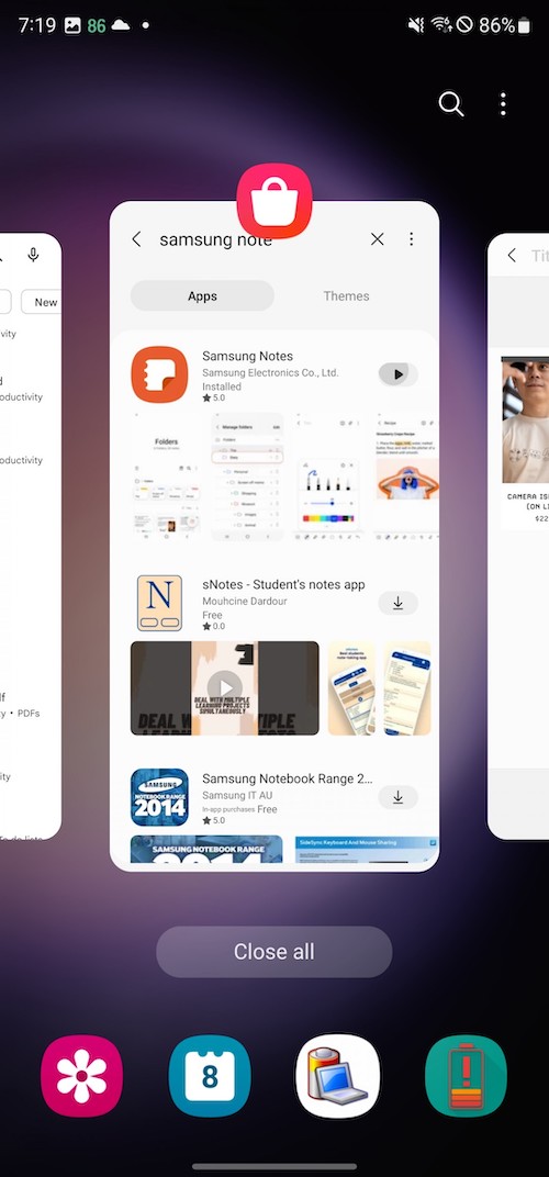 在S23 Ultra大尺寸螢幕搭配S Pen進行畫面分割的操作蠻實用的,你可以利用S Pen來任意調整分割視窗的比例,或是將喜愛的應用程式兩兩配對儲存,方便快速以視窗分割畫面來載入,此外還支援彈窗(甚至可以調整視窗透明度),我們覺得在多工執行環境搭配S Pen方面,S23 Ultra做得不錯,Z Fold則更好。