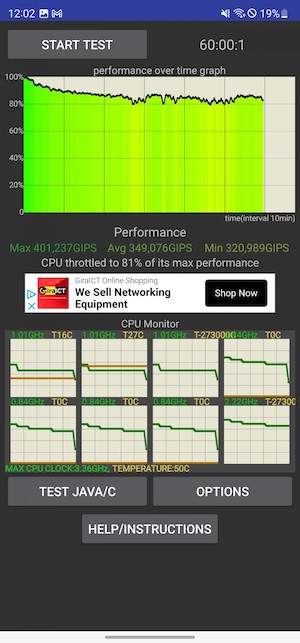 在持續負載下,我們知道不必預期旗艦機種採用的晶片會有什麼奇蹟式的表現。不過在運行壓力測試時,我們對於今年推出的Snapdragon 8 Gen 2的表現感到驚喜,S23和S23+或許不是最好的範例,但在連續負載測試下表現得很可以,而S23 Ultra在此更上層樓,尤其在CPU項目部分。