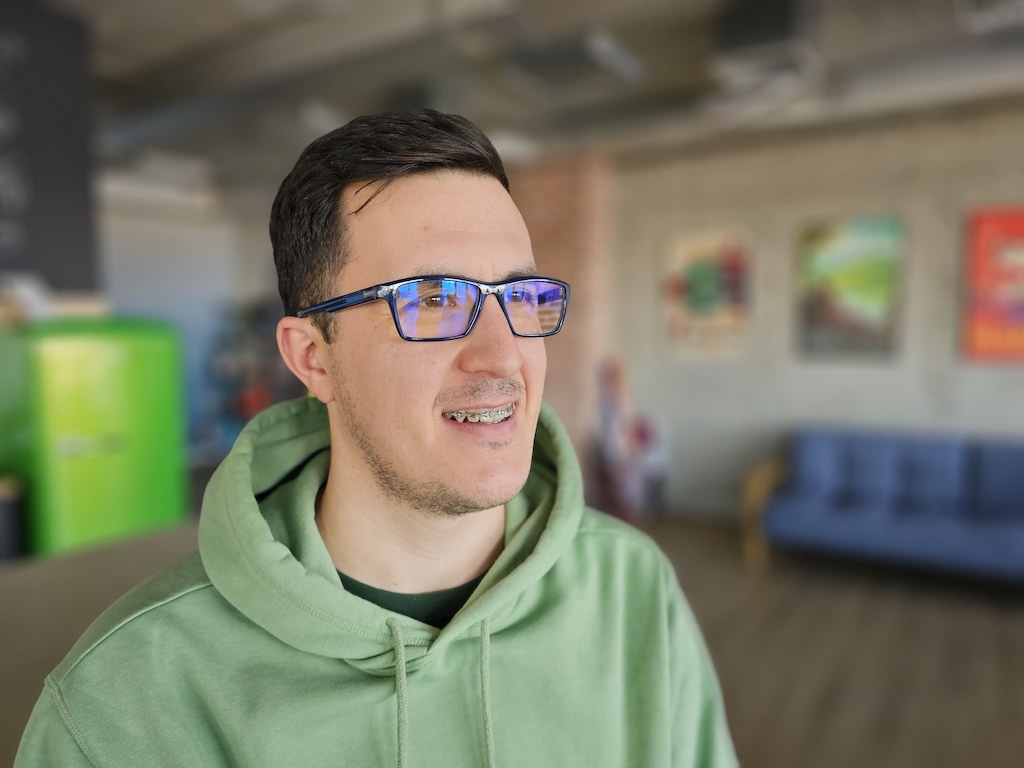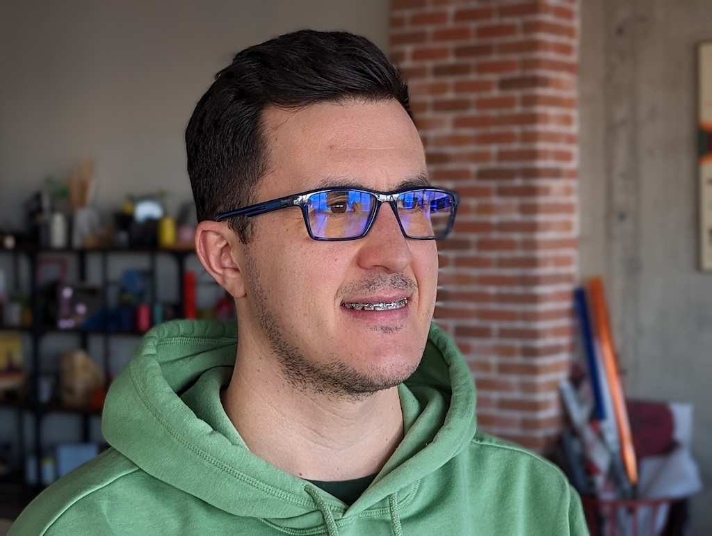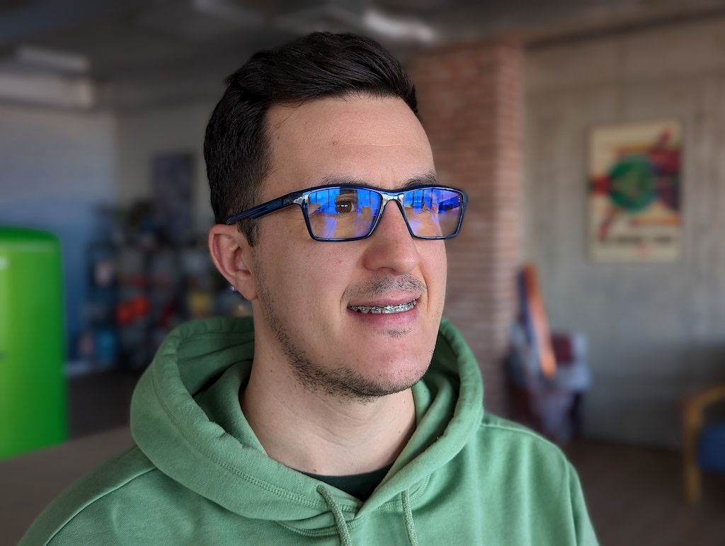 三星在發表會上有特別指出今年S23系列全都有改善景深映射(depth mapping),尤其當被拍攝的人有戴眼鏡時。如下面這兩組照片來看,S23 Ultra人像模式下處理眼鏡鏡框上可以比S22 Ultra處理得更精確,我們另外也有拿Pixel 7 Pro一起加入比較。