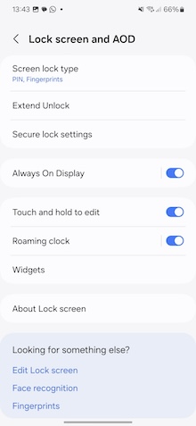 螢幕鎖定畫面沒有改變很多,同樣可選擇啟用Always on display(AOD),而且它與螢幕鎖定整合的更深入,例如有選項可讓螢幕鎖定畫面及小工具持續顯示。