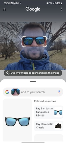 此外,除了圈選,你還可以透過在想要選取的區域塗鴉來進行選取,甚至僅透過點選影像上的物體/物件就可以進行選取。一旦物件被偵測到,你就可以結合圖片和文字進行搜尋以取得關於該物件的更多資訊,例如上段影片所示範的,圈選要查找的物件後,可以進一步查詢它可以在哪裡購買、它是什麼、以及相關資料。