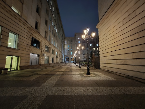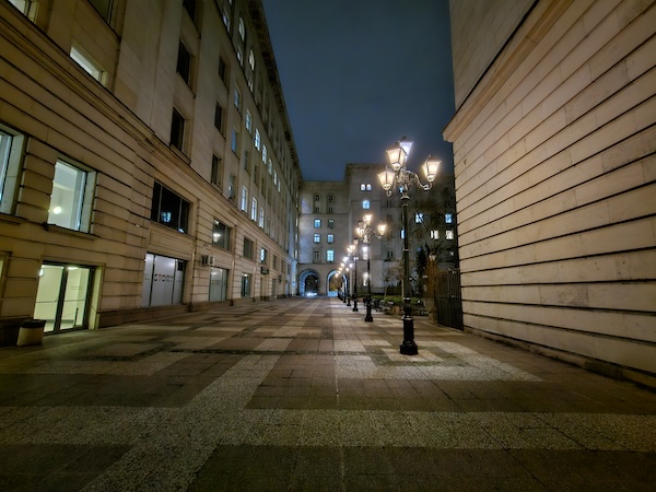 超廣角鏡頭在低光條件的拍攝表現與上面長焦鏡頭一樣;也就是說,在相片模式下照片的雜訊也是很多,不過我們發現超廣角鏡頭在此會稍微傾向用到自動夜間模式的動作,所以照片表現有時也還不錯。