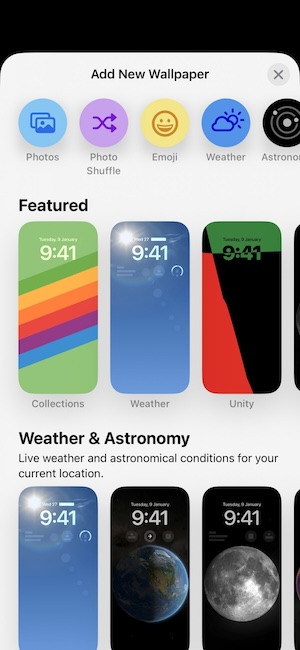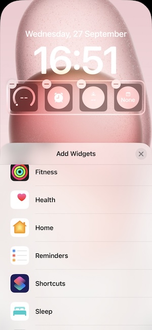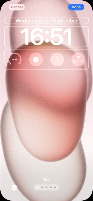 在鎖定畫面中,你可以自訂喜歡的桌布或加入一列小工具(此列最多只能擺放四個小工具),這個工具列最多只能一列。你可以建立多個鎖定畫面,然後依適時的切換自己當下想呈現現的鎖定畫面(長按鎖定畫面即可切換),藉此更換不同的小工具與鎖定畫面外觀。