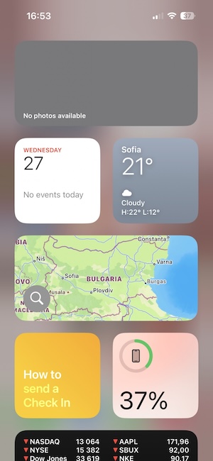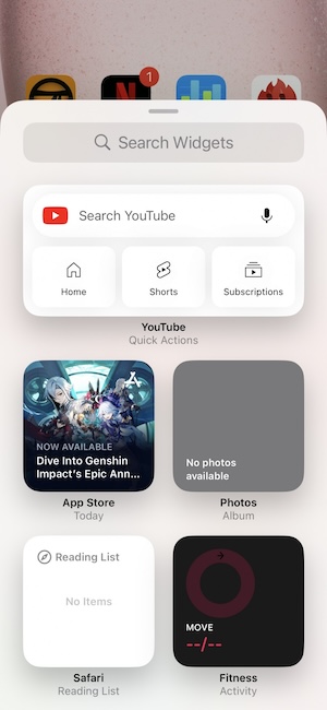 你可以在任何桌面以及「今日」桌面放置小工具,小工具可與桌面上的App共存。iOS提供的小工具支援三種尺寸:2×2、4×2和4×4。相同尺寸的小工具可以相互堆疊並開啟「智慧型輪播」,系統就會適時的顯示你有需要的小工具。