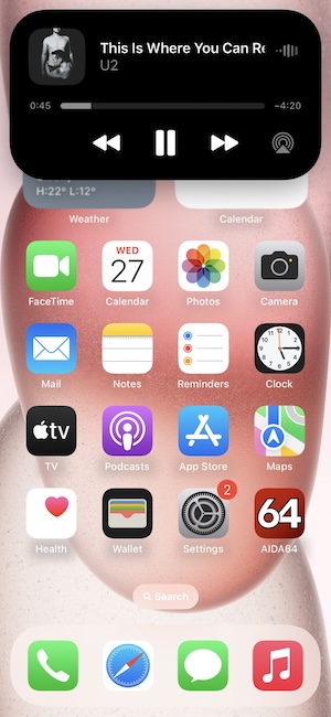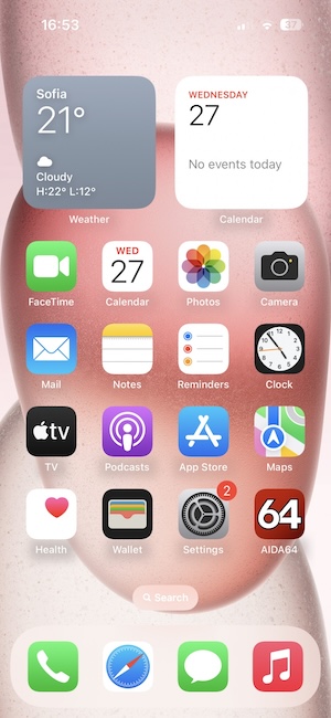 桌面的佈置仍然維持App加小工具架構,最右側為App資料庫(使用頻率較低的App可歸類在此),另外通知中心和控制中心都跟之前一樣,沒有變動。