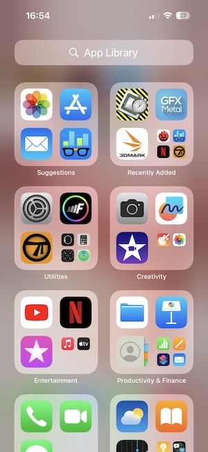 「App資料庫」其實就是所有應用程式的概念,但iOS多了幫你加以分類。每當你安裝一款新的應用程式時,它就會自動新增於此。其分類規則採用開發者當時提交蘋果軟體商店時他們所決定的分類,分類名稱你無法自行更改,你也無法手動將某支應用程式歸到想要的分類去。
