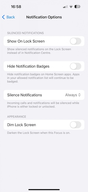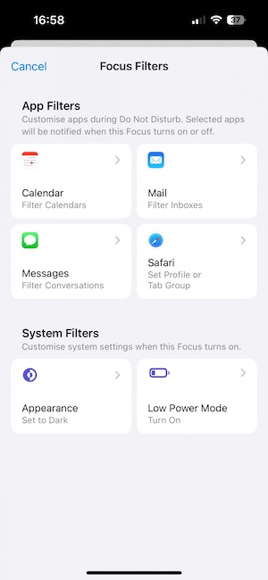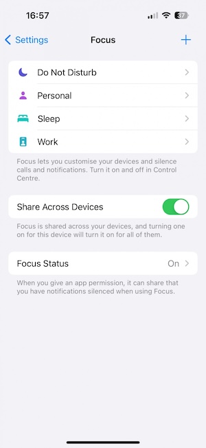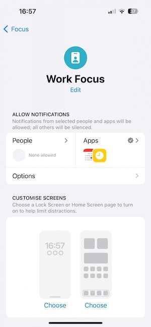 「專注模式」功能現在可與鎖定畫面搭配;讓你可以指定在不同的鎖定畫面下使用對應的專注模式。「專注模式」預設有工作、開車、遊戲、勿擾等,你還可以新增自訂。