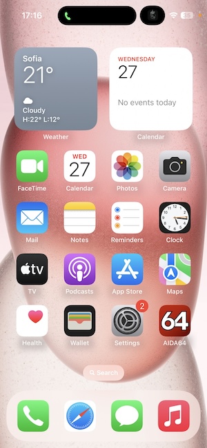 進到桌面後,系統內安裝的應用程式圖示除了放在桌面,你也可以置放小工具(前提是App有提供小工具的功能)。iOS 17仍維持最左側稱之為「今日」的桌面,讓你將會用到的小工具集中放在這裡。當然,小工具也可以放在其它的桌面上。至於最右側的桌面則是「App資料庫(App Library)」,系統會將你全部的App依照分類放在此處,在有需要時再將常用到的App拉到一般桌面上去。