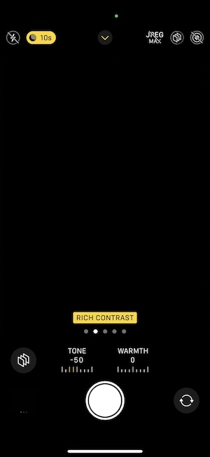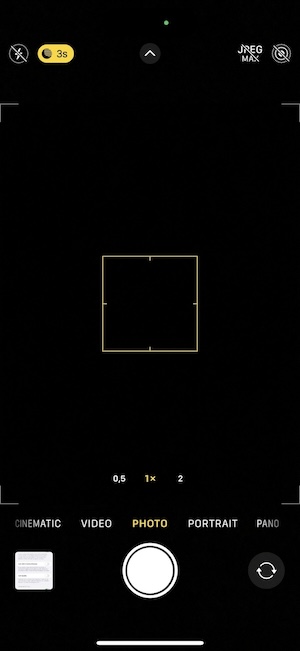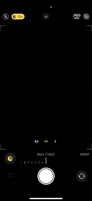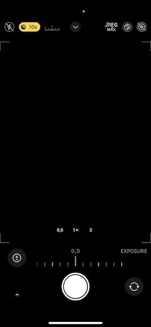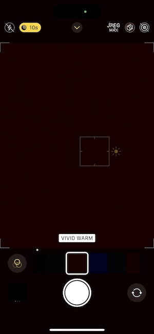 如同以往,iPhone 15具有自動夜間模式。 當它啟動時,在觀景窗介面上會有一個小圖示表示已經觸發夜間模式,此時你可以手動調整拍照的時間或選擇退出夜間模式。