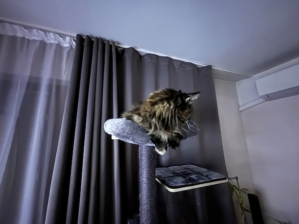 自動夜間模式立意良好,但可惜是無法讓人手動強制開啟,系統只能讓你手動關閉。我們並不喜歡iPhone 15處理其自動夜間模式的檢測和觸發的方式。因為它的觸發條件很讓人無所適從,而且過於保守。 說實在的,我們無法看出它的行為模式;在某些情況下,背景中只有幾盞燈時相機程式仍然不會開啟夜間模式,但在其它情況下,在前景中有大量的光源時,相機程式反而觸發了夜間模式。