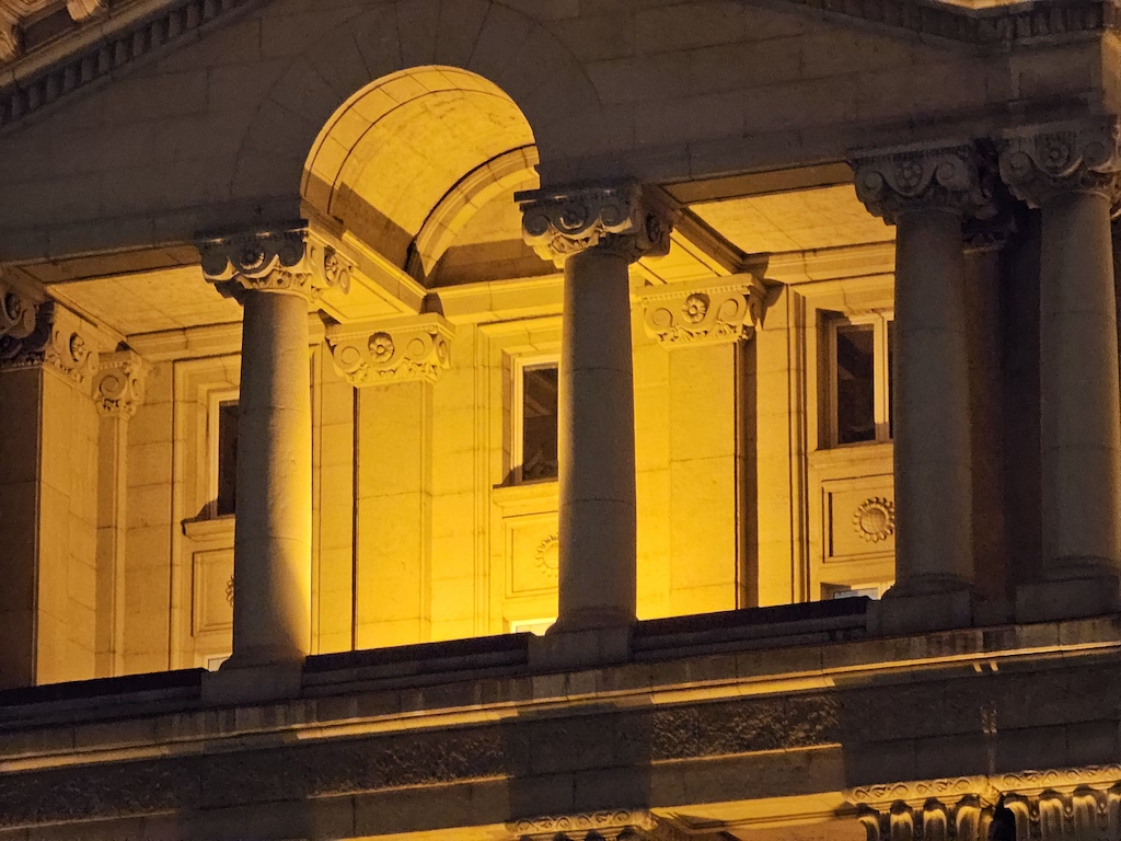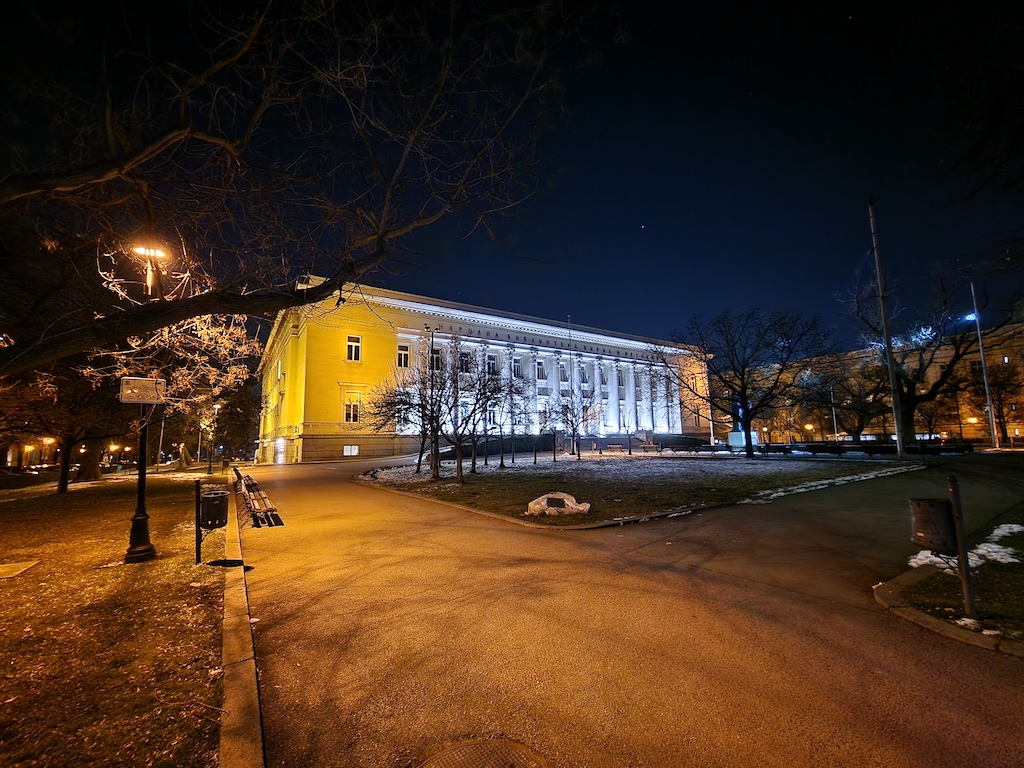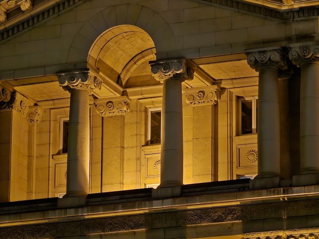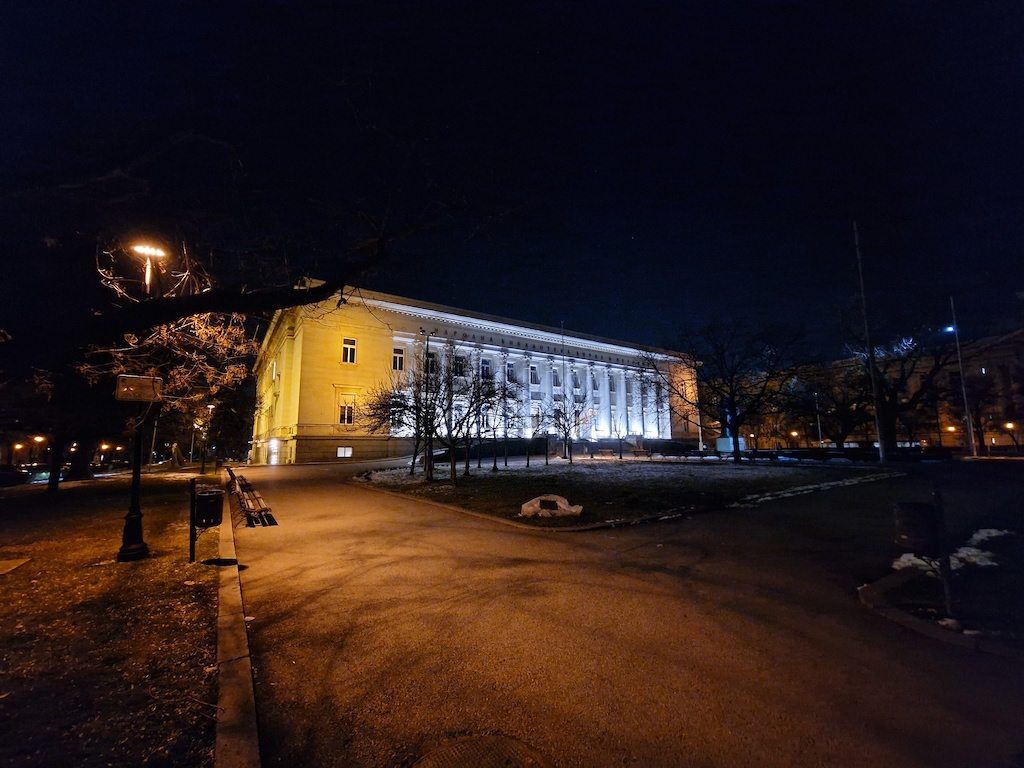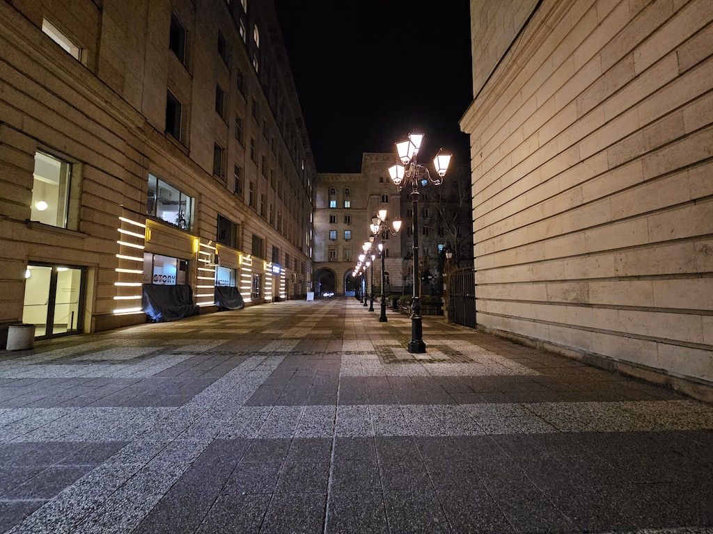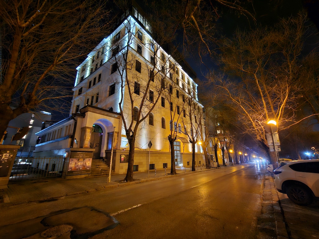 在低光源環境時,S23 Ultra有自動啟動夜間模式功能可以自動套用一些額外的演算處理。此功能不會在所有場景中介入,但當它介入時,觀景窗旁會有一個黃色的新月圖示提醒,此時你若不想套用它,可以在這個黃色新月圖示上點一下,月亮就會從黃色變成白色,表現自動夜晚功能關閉了。照相程式會記憶你最後一次使用的拍照設定。實測結果,S23 Ultra主鏡頭在夜間可以拍出令人滿意的照片。色彩被良好保存下來,而且在黃色路燈照射或光線複雜的場景,白平衡沒有出現什麼問題。補獲的細節豐富而且渲染佳,雜訊控制在最小值。