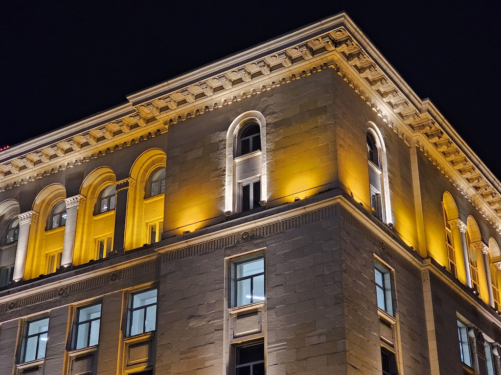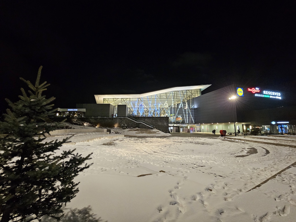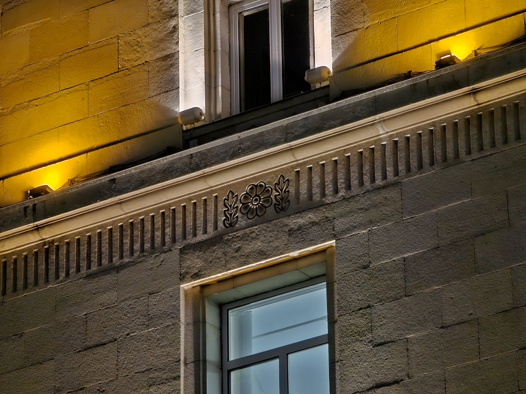 接下來使用專屬的夜間模式可以為影像帶來多大的改進很值得一提,而且非常了不起。底下這組照片明顯更乾淨,細節也更好,沒有上面主鏡頭開啟專屬夜間模式後那種加工演算讓銳利度過高的情況。動態範圍也獲得正向的提升。因此我們建議使用超廣角鏡頭在夜間環境拍攝時,直接就開啟專用的夜間模式吧,不要使用自動夜間模式了。