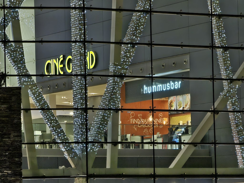 嚴格來說,S23 Ultra的超廣角鏡頭在低光源環境拍攝表現就沒有什麼特別之處,但還算可以。在自動夜間模式下,動態範圍表現佳,但如果在更具挑戰的光線條件下,建議使用專屬的夜間模式。底下這組照片是超廣角在自動夜間模式的表現,色彩保留良好,而且我們沒遇到白平衡表現不穩定的情況。將影像放大原尺寸觀看時,在光源充足區域有相尚好的細節,但在較暗區域及中間調較低區域就被雜訊覆蓋了。