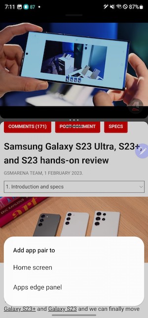 在S23 Ultra大尺寸螢幕搭配S Pen進行畫面分割的操作蠻實用的,你可以利用S Pen來任意調整分割視窗的比例,或是將喜愛的應用程式兩兩配對儲存,方便快速以視窗分割畫面來載入,此外還支援彈窗(甚至可以調整視窗透明度),我們覺得在多工執行環境搭配S Pen方面,S23 Ultra做得不錯,Z Fold則更好。