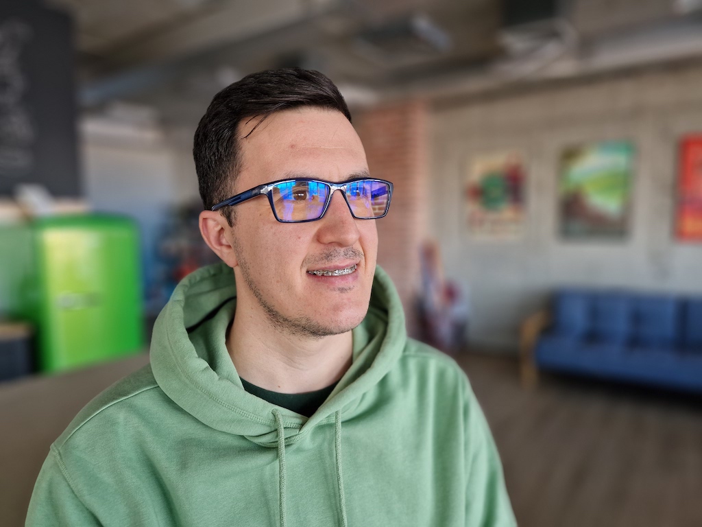 三星在發表會上有特別指出今年S23系列全都有改善景深映射(depth mapping),尤其當被拍攝的人有戴眼鏡時。如下面這兩組照片來看,S23 Ultra人像模式下處理眼鏡鏡框上可以比S22 Ultra處理得更精確,我們另外也有拿Pixel 7 Pro一起加入比較。