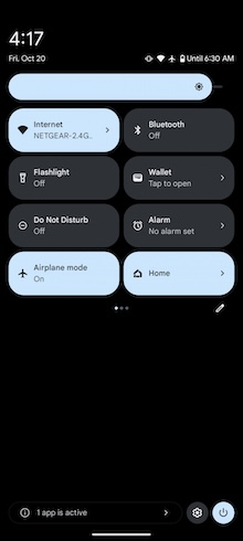 與Android 13整體外觀和介面相比,Android 14沒有什麼顯著的更改。如果你先前就有用過原生Android,那Android 14會讓你熟悉很快上手;螢幕鎖定畫面、桌面、通知選單、快速功能切換、近期開啟程式檢視及所有應用程式都維持原來的樣子。但下拉通知選單多加了一個小功能,會有列表顯示目前在背景中執行的程式有哪些,好讓你知道哪些App即使你沒有正在使用,它仍然在運作中,此功能方便你追蹤手機的用電情況。