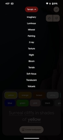 由於具備新一代的AI功能,在Pixel 8 Pro上建立影像變得更容易,系統還加入可讓你自行建立自己專屬、高品質的桌布這個新功能,當中內含12個主要風格讓你搭配並有豐富的文字及顏色組合。