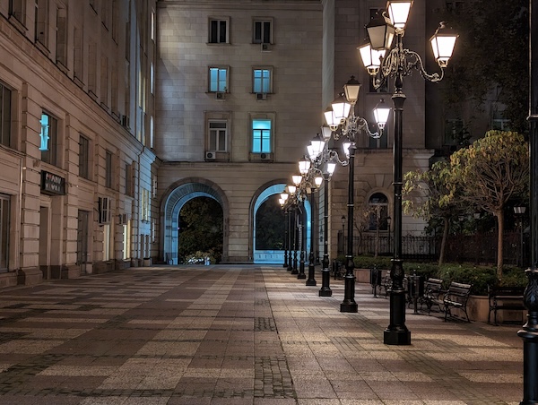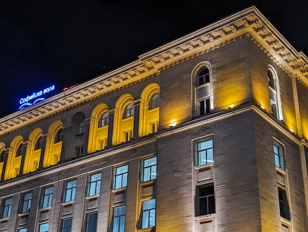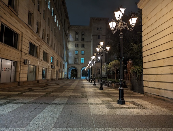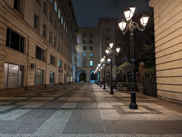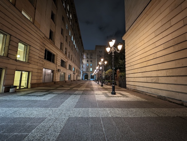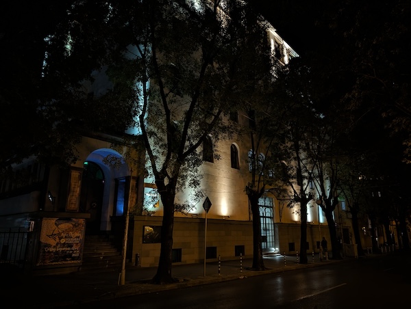 Pixel 8 Pro的夜間模式拍出的照片在曝光上處理得恰到好處,燈光區域的影像細節保留得不錯,陰暗區域也有獲得適當的亮度提升。整體影像亮度的提升不作做,但與實際場景那種暗確實也已經有某些程度上的差異(實際場景其實都有比照片所呈現的更暗)。Pixel 8 Pro在陰暗區的白平衡處理還讓我們給予高度肯定,對於街道上各種複雜的路燈或建築物上的照明,它都能輕鬆的處理。