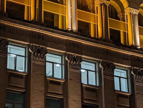 Pixel 8 Pro主鏡頭在夜間環境可以拍出出色的照片並不讓人驚訝。它在某些光線條件下很可能進行至少某種程度上的自動夜間模式處理,你在觀景窗中並不會收到這樣的提示,但可以察覺影像有非常明顯的不同。無論如何,它的影像處理讓人放心,但以下仍會幫大家就自動夜間模式和手動模式的結構來討論其影像品質。