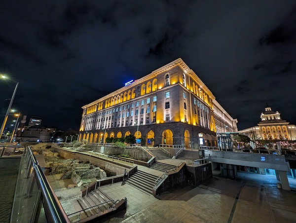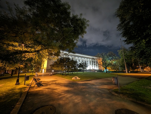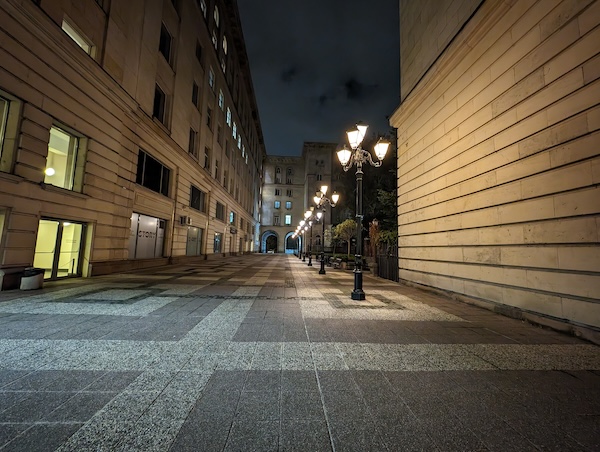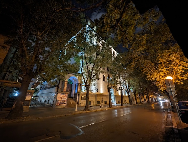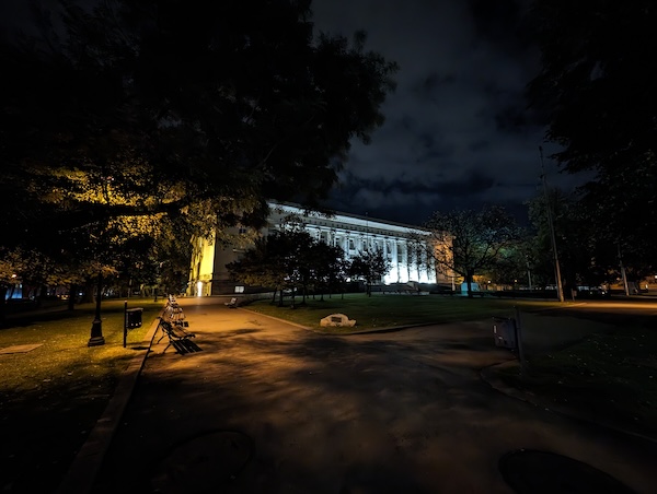 接著來看超廣角的夜晚場景拍攝。同樣的,有開啟夜間模式時拍出的照片大都比較好看。尤其是對比較明顯的場景受益於夜間模式最大-陰暗區域的亮度獲得正確的提升,而亮部區域獲得更好的控制,減少了過曝所損失的細節。此外,色彩飽和度亦有一定程度提升。Pixel 8 Pro的超廣角鏡頭完全勝過Pixel 8的(註:Pixel 8採用的是1200萬畫素鏡頭,而Pixel 8 Pro則是配備4800萬畫素鏡頭)。