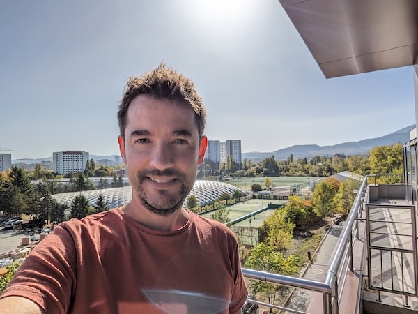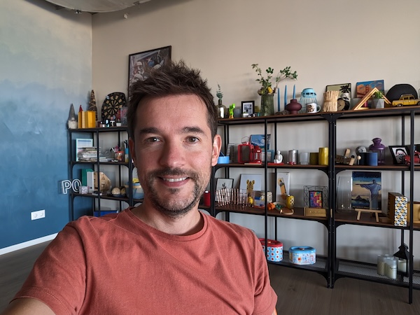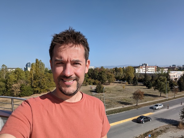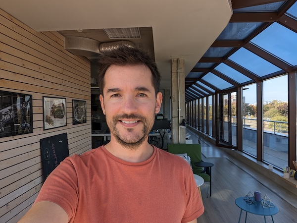 只要不是背光場景,0.7x模式拍出的照片可提供不錯的細節和清晰度。如果在背光條件拍攝,則需要提升你臉部區域的曝光度以不致於產生曝光不足情況,這結果會影響降噪處理進而讓臉部毛細孔比較不會那麼明顯。然後,除了白平衡中偶爾出現的小失誤外,前鏡頭在色彩重現或膚色的表現沒有太大問題。