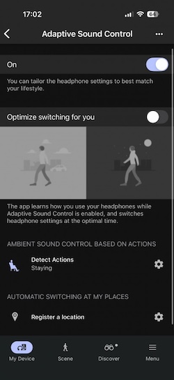 XM6再次將Sony的自適應音效控制(Adaptive Sound Control)功能加回來了,耳機能根據你所處的環境與正在進行的活動,自動在降噪與環境音模式之間進行切換。