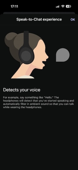 Speak to chat(快速聊天模式)是另一個大家熟悉的功能,當耳機偵測到你開口說話時,它會立即開啟環境音模式,這樣一來你無需停止音樂也能與旁人對話。