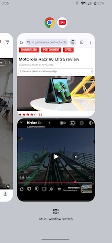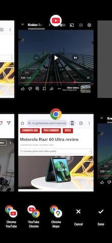 另一個Sony獨家的,值得一提的地方是其「Multi-window」多工視窗管理功能(雖然不是新功能了)。你可以透過導覽列上的程式切換鈕(又稱「總覽按鈕」,也就是檢視近期開啟的程式那顆按鈕)或主畫面上專屬的「視窗管理員」捷徑來啟用此模式,接著你看到上下兩列可滑動顯示目前開啟的程式捲動列表,接著分別再為上半部和下半部視窗選擇要載入的程式就可以進行分割檢視了。上半部和下半部的分割視窗最右邊的面板有提供讓你載入其它應用程式的選項,而非從背景中挑選正在運行中的程式。